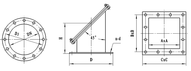 DN(A×A) | D1(B×B) | D(C×C) | H | n-d | 重量(liang)(Kg)W |